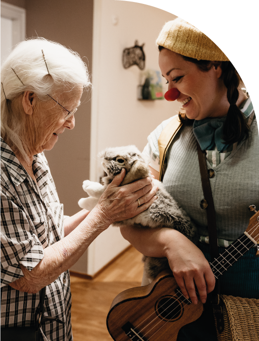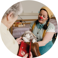 Er volle aandacht is voor jouw dierbare en in alle rust écht contact gemaakt kan worden. Door gebruik te maken van clownerie techniekenen expressiemogelijkheden van adem, stem en lichaam maak ik verbinding en zorg ik voor meer rust en ontspanning. Het gevoel van verdriet, angst, onmacht, verwarring en strijd neemt voor even af. Samen op zoek naar verwondering en plezier. Je kan met eigen ogen ervaren hoe waardevol het kan zijn.